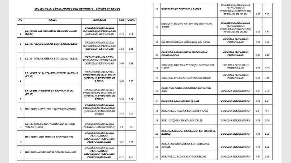 Senarai nama anugerah dekan bagi sesi Mac 2019 - Julai 2019.
